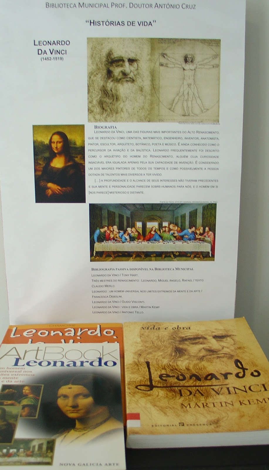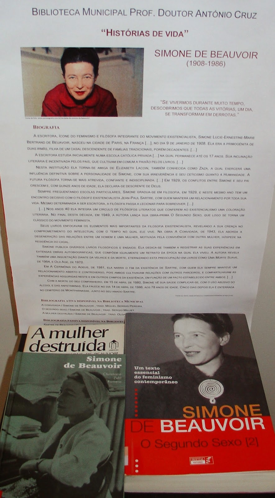 A Biblioteca Municipal Prof. Doutor António Cruz apresenta esta iniciativa de divulgação das obras que integram o seu fundo documental. “Histórias de vida” é uma mostra bibliográfica que, quinzenalmente, destaca personalidades com relevância em Portugal e no mundo.